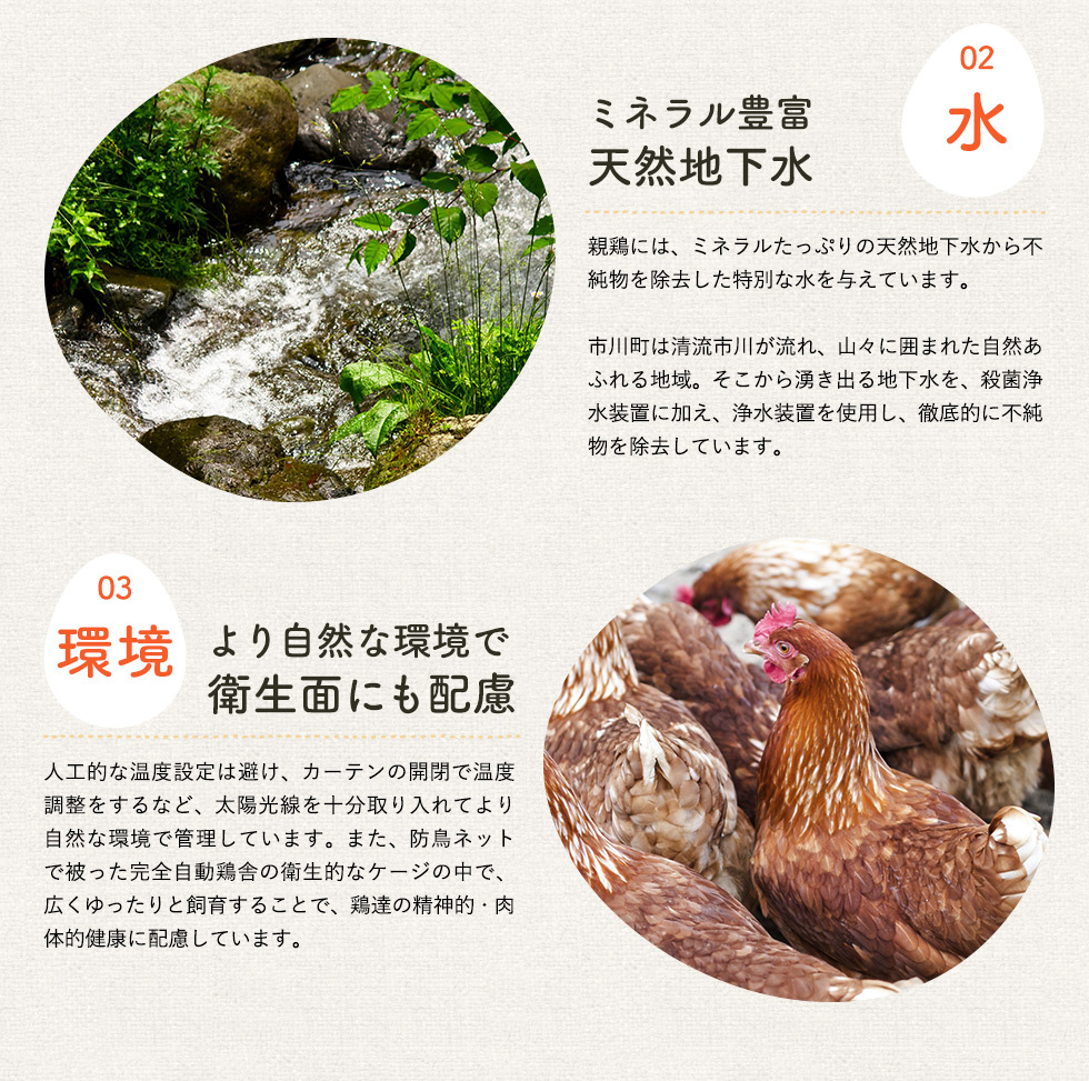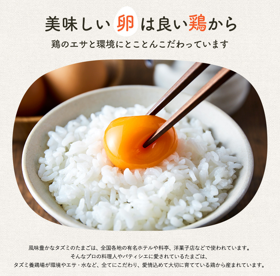 特別な天然飼料で育てた鶏が産んだ新鮮な卵。ビタミン・ミネラルたっぷりで栄養価満点です。