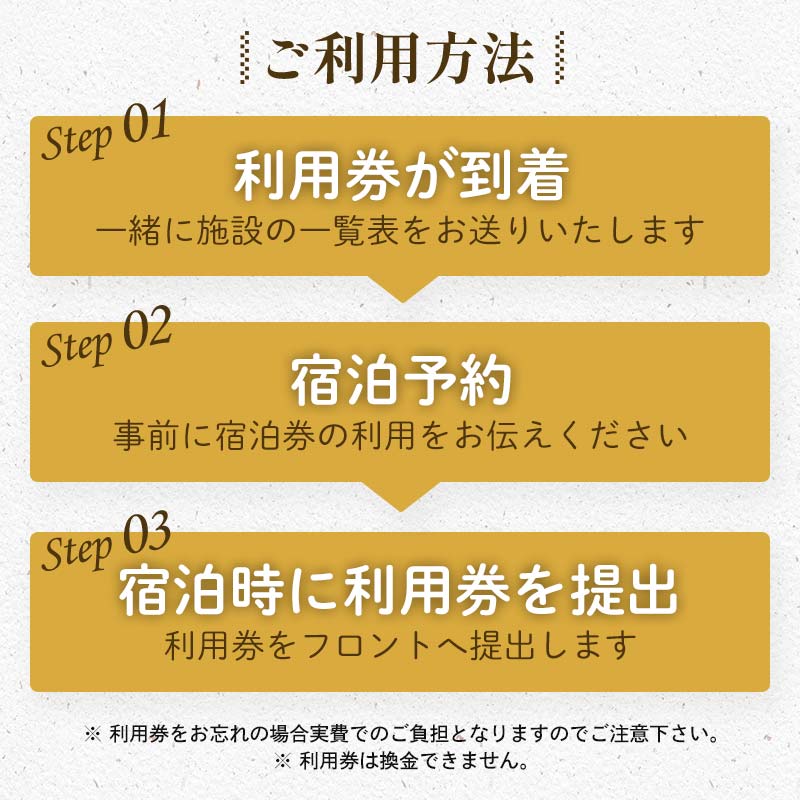 (3)宿泊時は本券をフロントへ提出してください。また、本券をお忘れの場合、実費でのご負担となりますのでご注意下さい。