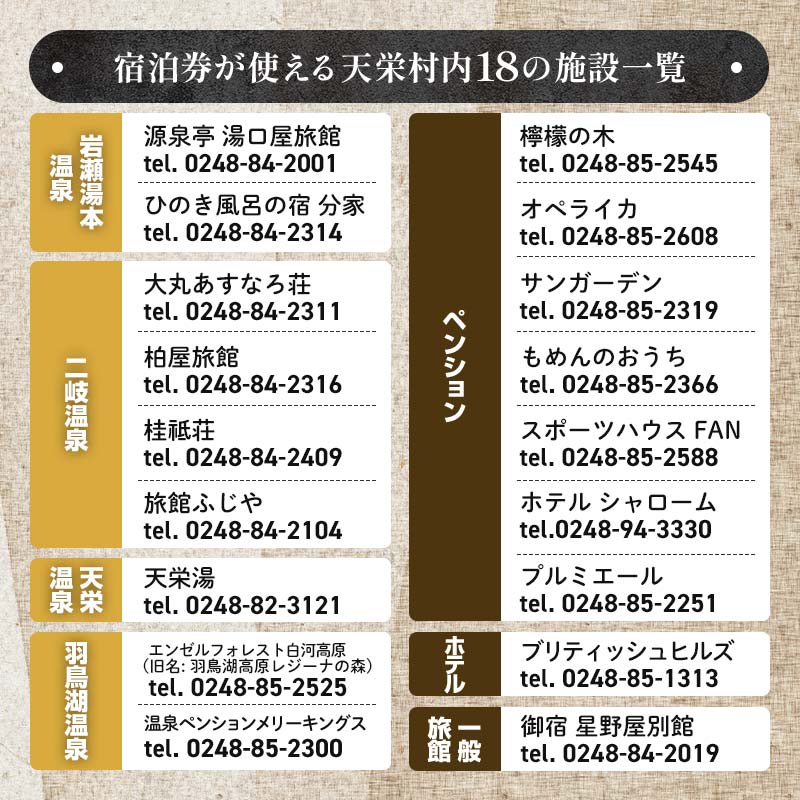 旅館・ホテル・ペンション天栄村内18施設の宿泊施設宿泊券(3,000円分)
