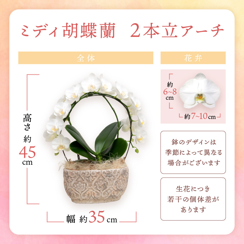( 胡蝶蘭 ミディ アーチ 鉢付き選べる 色 ホワイトミディ イエローミディ ライトピンクミディ ディープピンクミディ 胡蝶蘭専門店 )