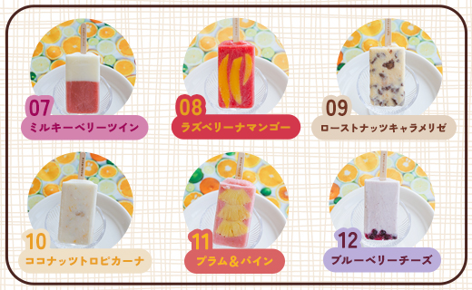 ■ミルキーベリーツイン ■ラズベリーナマンゴー■クラッシュクッキー ■ココナッツトロピカーナ■プラム&パイン ■ブルーベリーチーズ