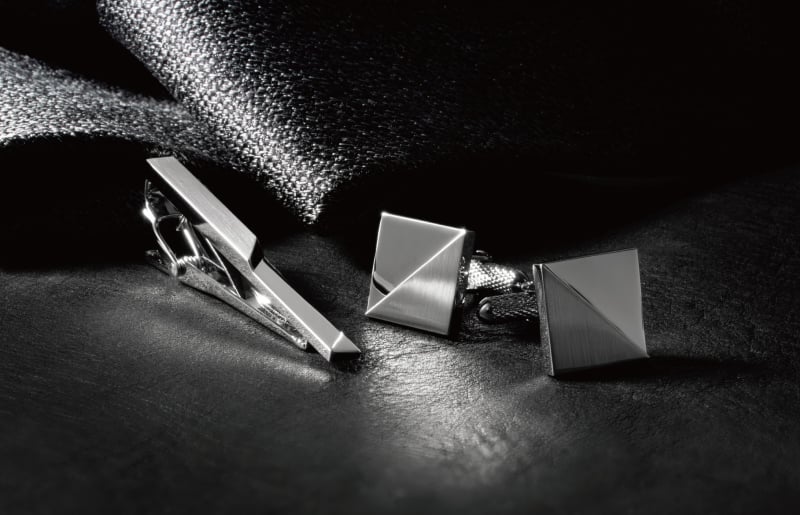 メンズ雑貨ブランドTAVARATのカフスボタン。2つの段差がジオメトリックなデザインに。シンプルな中にアクセントのある上品なデザインに仕上げています。