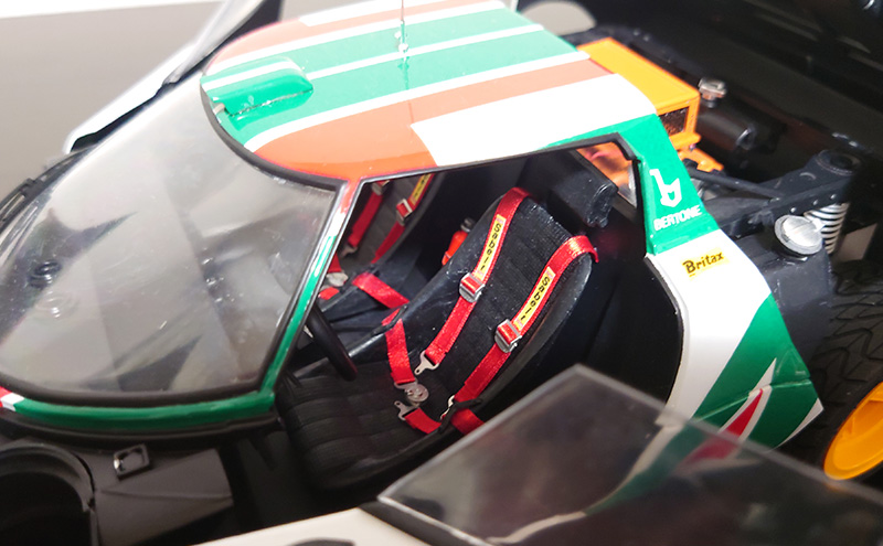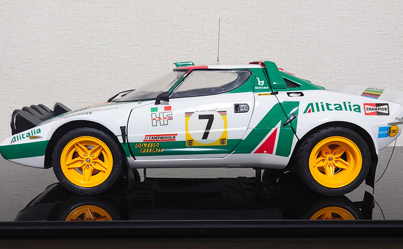 1970年代の世界ラリー選手権において圧倒的な強さを見せた名車「ランチア ストラトス HF」の1/12スケールでモデル化したプラスチックモデル完成品です。