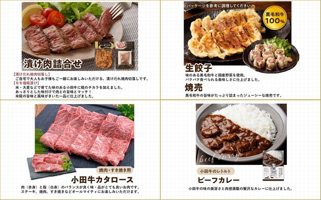 ローストビーフなどの加工品や、小田牛の濃厚な脂の甘味と肉の旨みを味わえるカタロースやリブステーキ、