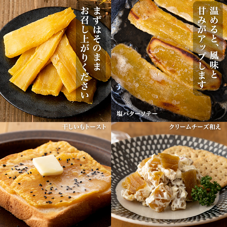 干し芋に加工すると「鮮やかな黄色で食味は粘質で甘みが強く、今までの干し芋のイメージを変えた品種」と言われています。