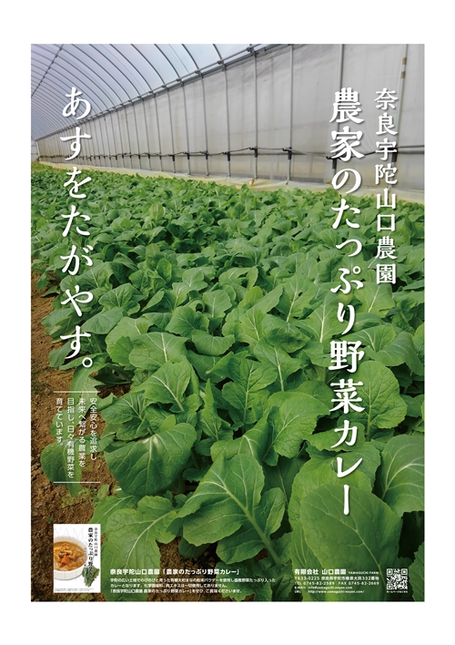 またそういった有機農業を広めるため山口農園では農業学校「オーガニックアグリスクールNARA」を運営し、出来る限り農業に携わる方を育成しています。また卒業生が有機農業で新規独立就農が出来るように「山口農園グループ」をつくり全国のスーパーや百貨店などに野菜をグループとして出荷しています。