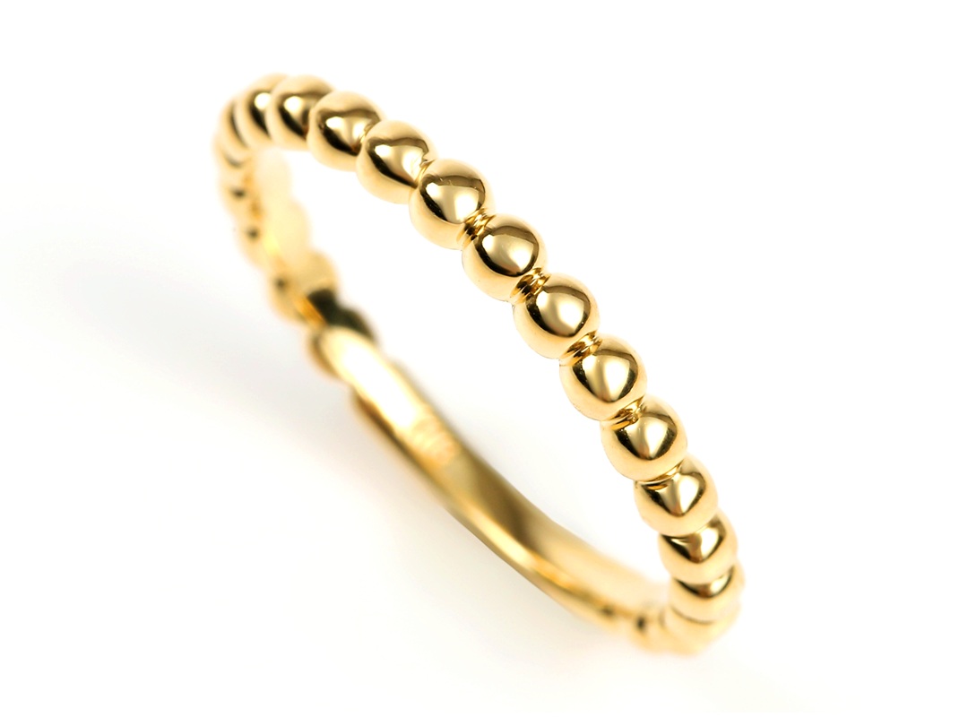 K18の丸玉を連ねたようなデザインの指輪です。丸玉の中もK18の無垢仕上になっていますので、スタイリッシュな見た目以上にしっかりとした質感の指輪になっています。
