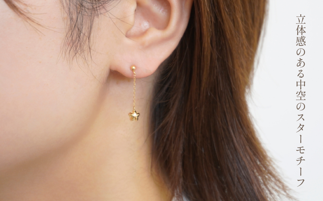 K18イエローゴールドのスターモチーフが流れ星のように揺れるデザインのピアスです。
