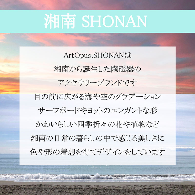 ArtOpus.SHONANのアクセサリーは陶磁器をベースに作られています。
