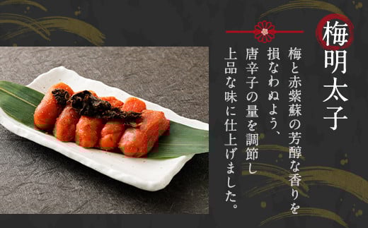 「太宰府市限定梅明太子」は梅と赤紫蘇の芳醇な香りを損なわぬよう、唐辛子の量を調節し上品な味に仕上げました。