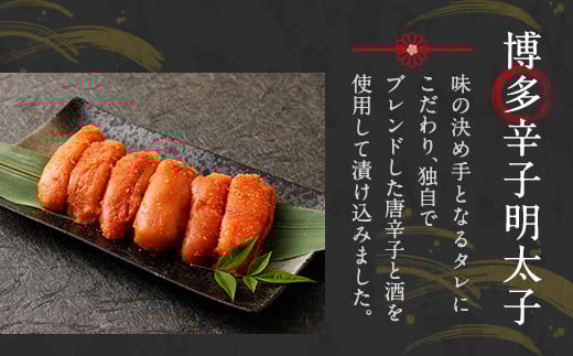 「博多辛子明太子」は味の決め手となるタレにこだわりがあり、水を一切使用せず独自でブレンドした唐辛子と酒を使用して漬け込みました。