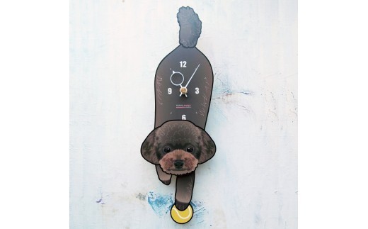 D-163W3 チョコプードル-犬の振り子時計毛糸玉03.RED C-CD-163A