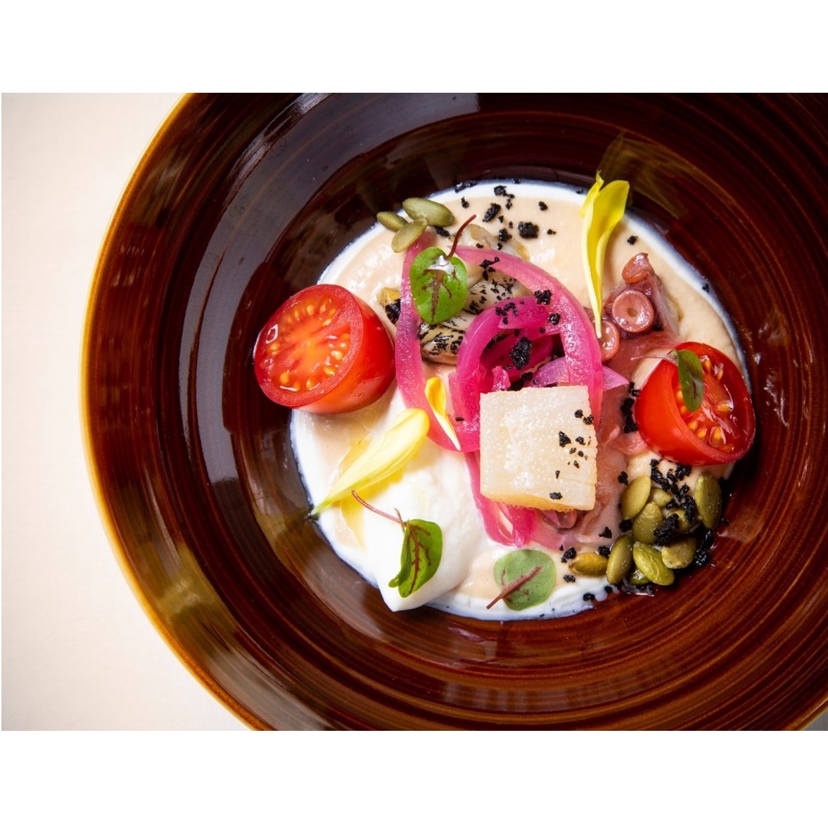 *<白糠酪恵舎>トーマシラヌカエスプーマとタンタカのラぺ / 季節のフルーツのチャツネ / タイムのソルベ*