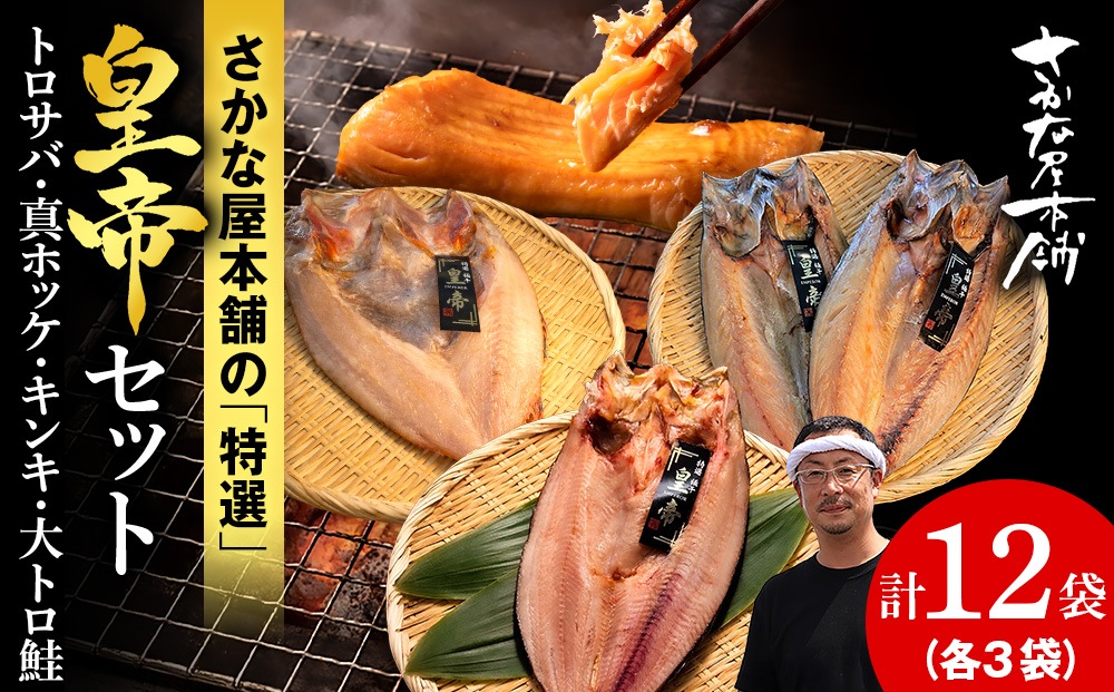 【最高峰!皇帝セット】 皇帝キンキ・皇帝とろさば・皇帝真ほっけ・皇帝大とろ鮭 各3枚