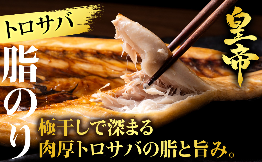 【皇帝とは】…さかな屋本舗の厳しい品質基準(サイズ・脂質・旨味・鮮度)より更に上、選りすぐり極上の原料のみを使用し干物の匠による本物を追求した特別な製造方法にて育てあげられ完成した別格の【極干】干物です。