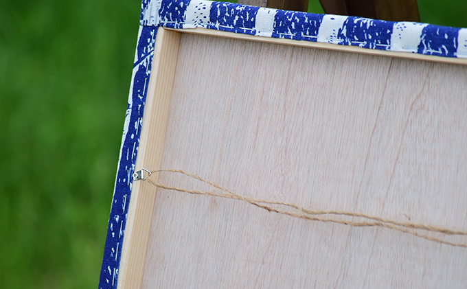 シルクスクリーンの手捺染で染めた生地をファブリックパネルに仕立てました。