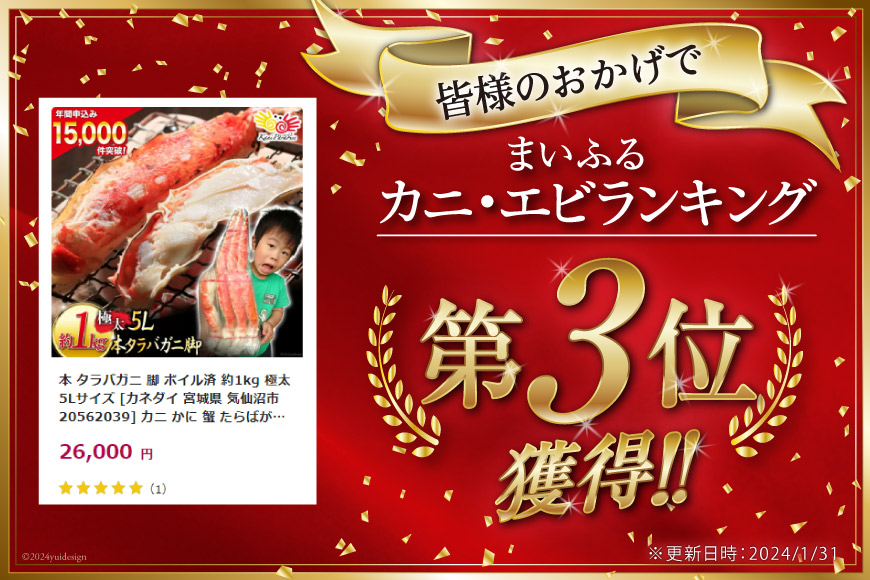 身入りが安定する冬漁で漁獲され、肉厚でぎっしりと詰まっている身に大満足間違いなし!