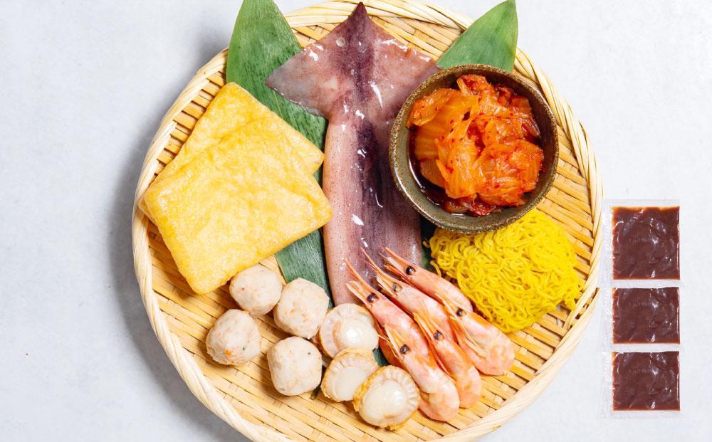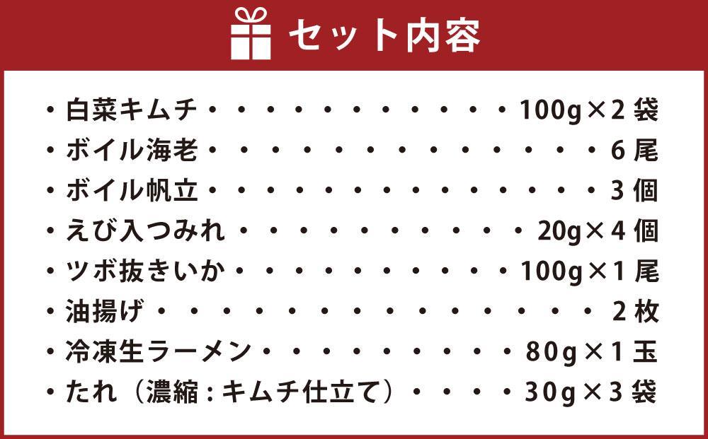 本場韓国の白菜キムチを使い、多彩な魚介を詰め合わせました。ピリ辛の「キムチ鍋」でお召し上がりください。