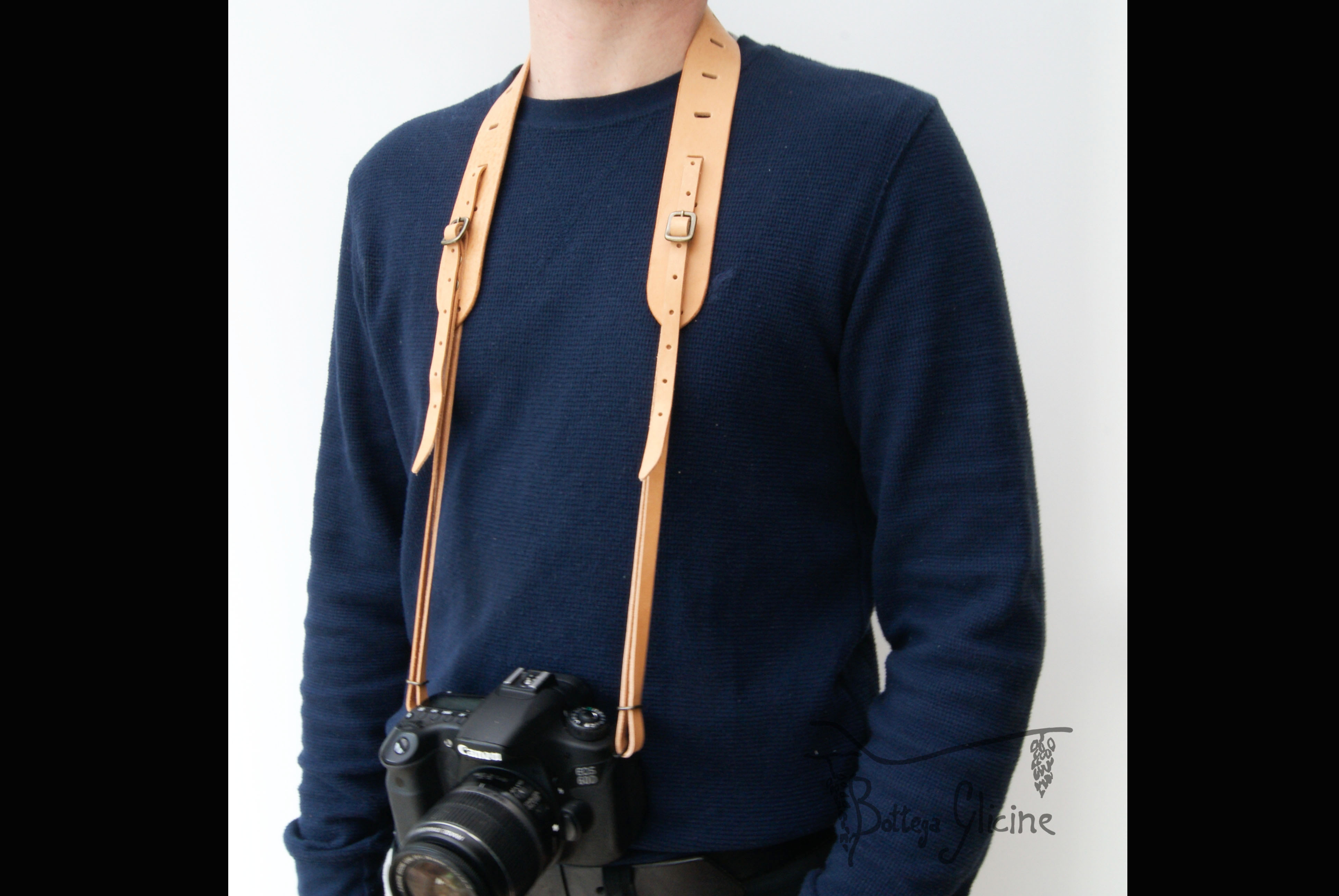ネックストラップとしてはもちろん、ショルダーストラップとしても使える革製品のカメラストラップ。