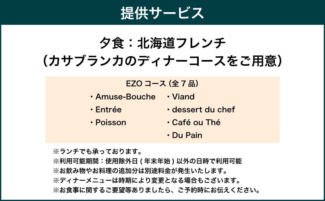 夕食:北海道フレンチ(カサブランカのディナーコースをご用意)