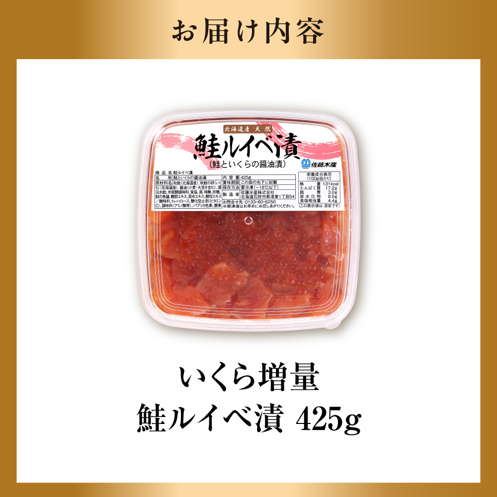 鮭から作った「鮭醤油」入りのタレに漬け込んだ「鮭ルイベ漬」は、鮭といくらのおいしさをギュッと閉じ込めました。全国各地の百貨店で開催される「北海道物産展」でも、不動の人気を誇っています。身の歯ごたえと透明感、とろける食感と凝縮された旨味をご堪能ください。解凍して、そのままご飯のおともに、酒の肴に。