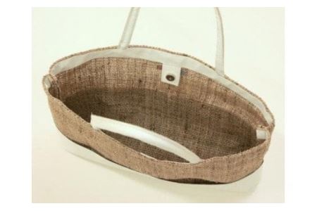 前後ポケット、見返しには真っ白なリネンを使い、白の本革持ち手を組み合わせました。