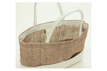 持ち手高さ15cm、重さ300g、麻100%、持ち手牛革、持ち出しマグネット付