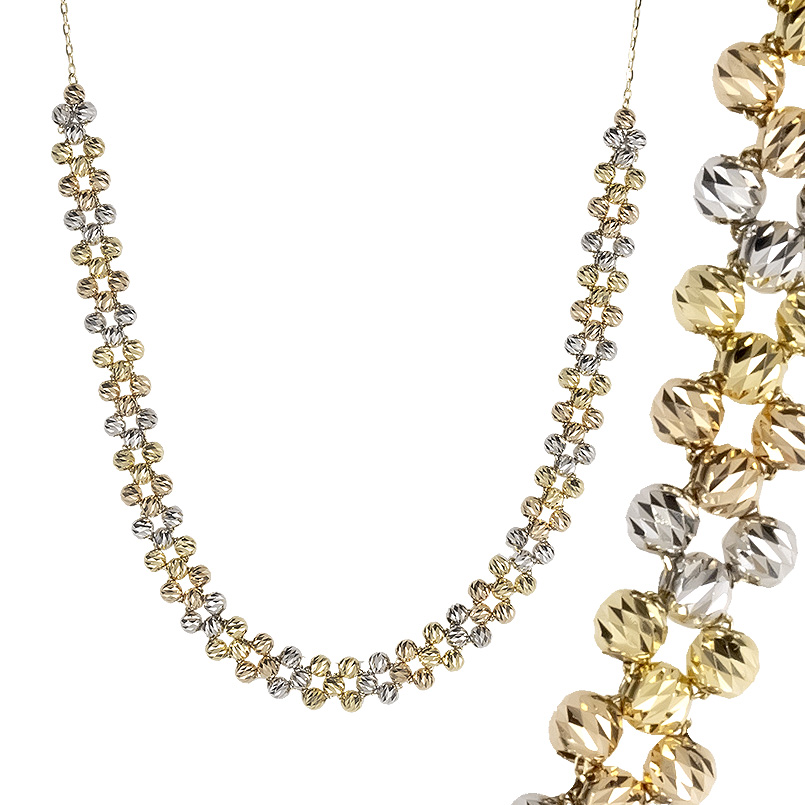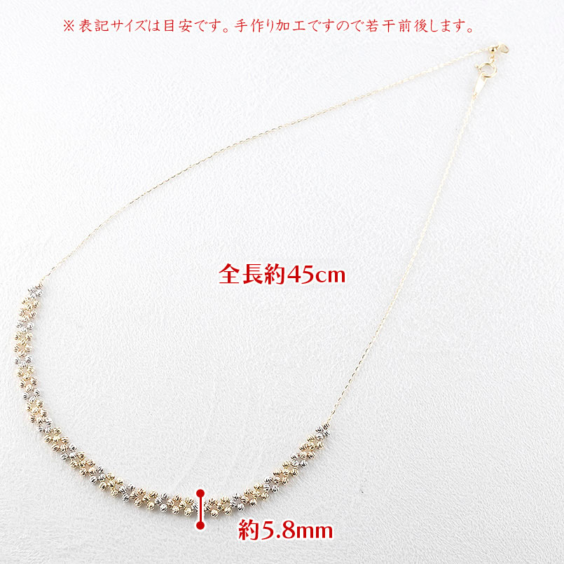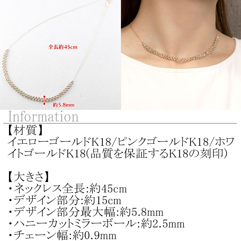 中央に編み込まれた3色のハニーミラーボールが華やかで上品なネックレス