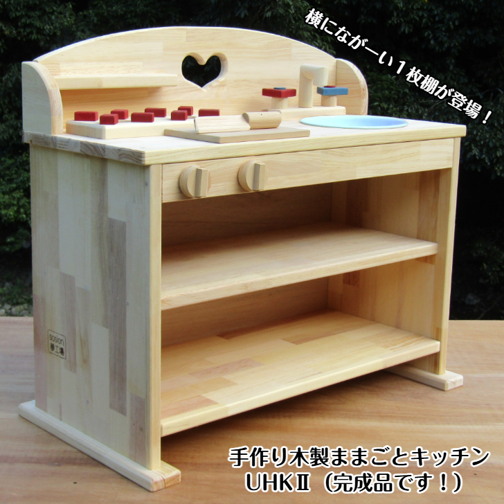 2口コンロ(固定されています)・ホーローの流し(取り外しできます)・水とお湯に分けたコック・蛇口は左右に回るタイプ。コックもツマミも全てクルクル回ります。透かしは指定のない場合「ハート」になります。