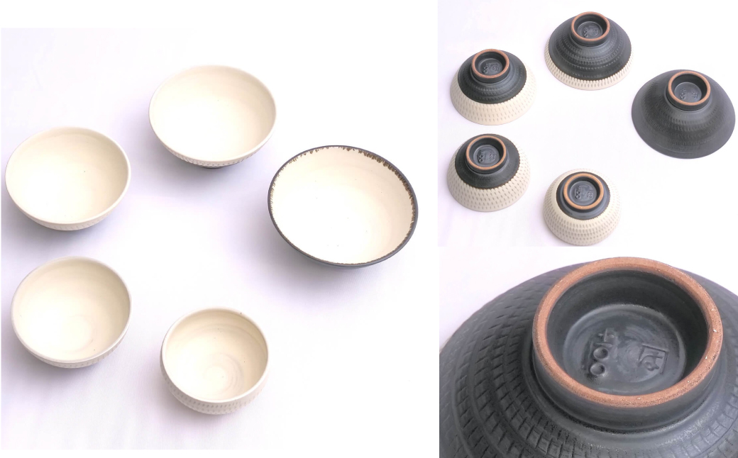 作家が一つ一つ心を込めて手作りし、ロクロ引きをしました。百碗の形が入れ子という形式なのでサイズが重要になります。