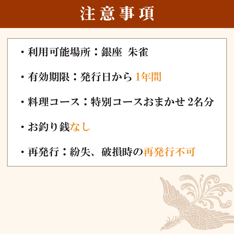 ・銀座 朱雀でのお食事代のみ有効