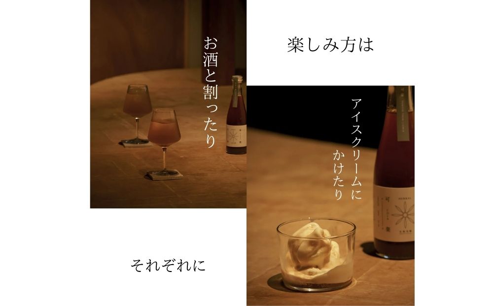 ・グラスに本品と氷を適量入れ、シロップとソーダ水1:4の割合になるように注ぎ込み、かき混ぜれば完成。
