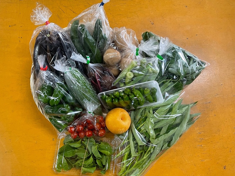 キャベツ、レタス、じゃがいも、きゅうり、トマト、さつまいも、ズッキーニ、枝豆、とうもろこし、アスパラ、ネギ、チンゲン菜、ニンニク、オクラ、春菊、ナス、ブロッコリー、にんじん、かぶ等