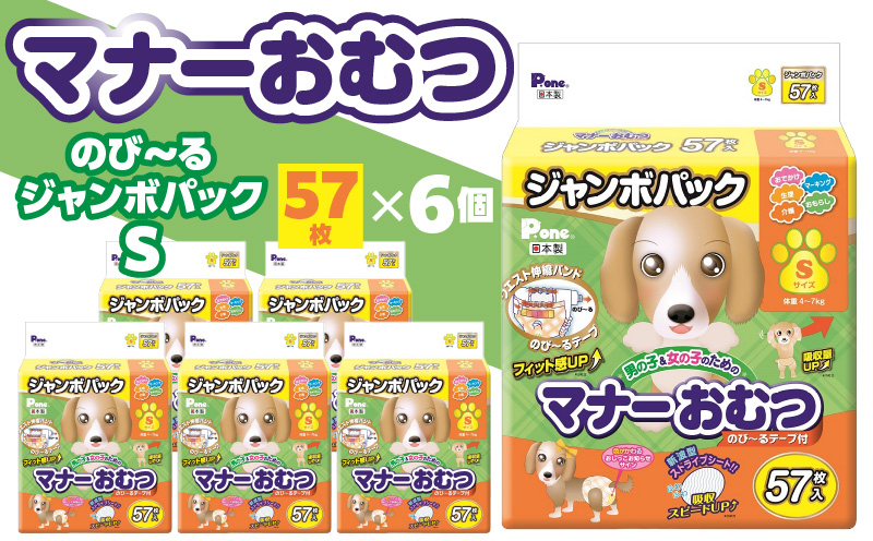 マナーおむつのびーるジャンボパックS 57枚×6(372枚)