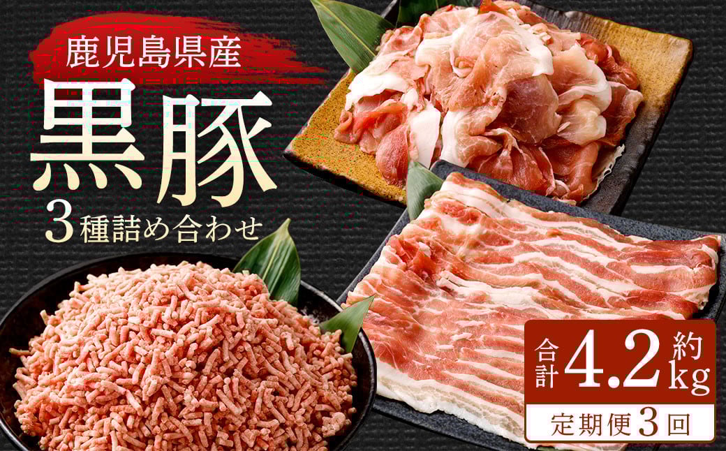 CS-531 【3ヶ月定期便】鹿児島県産黒豚 3種詰合せ(1.4kg×3回)-[CS-531]