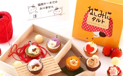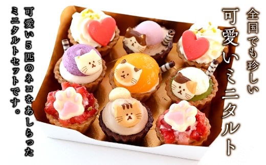 可愛い5匹のネコをあしらったミニタルトセットです。