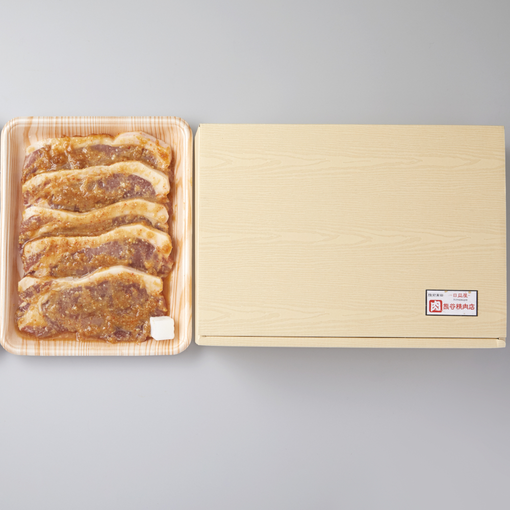 上質な「岩手県産豚背ロース」を「くまがいホルモン」の味噌だれで漬け込んた商品です。焼くと香ばしい味噌の匂いがして、ご飯によく合います。また、お酒のおつまみにもなり、大変人気です。