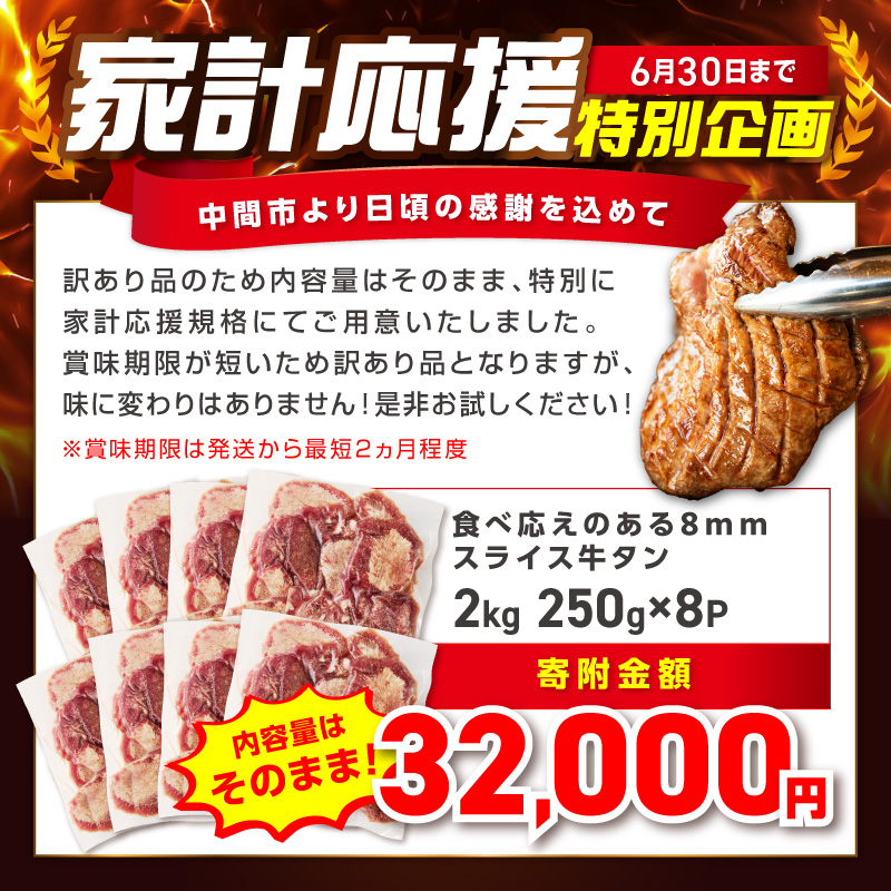 牛タン8mm 250g×8 計2kg