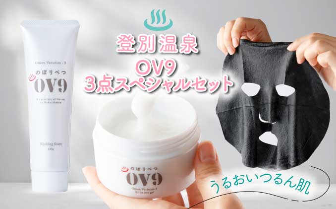 日本有数の温泉地「登別温泉」から美容成分たっぷりの「OV9」シリーズの3つのラインナップ(フェイシャルマスク、ウォッシングフォーム、オールインワンジェル)をお届け致します。