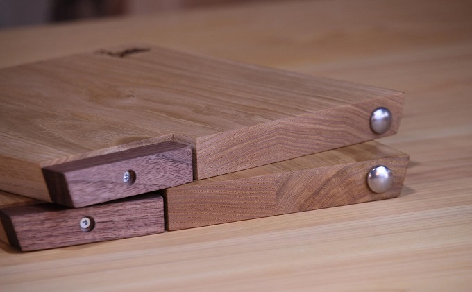 まな板を正面にし上下の側面は斜めにカットしてあるので爪も引っかからず、スムーズに持ち運びできます。(写真5枚目)