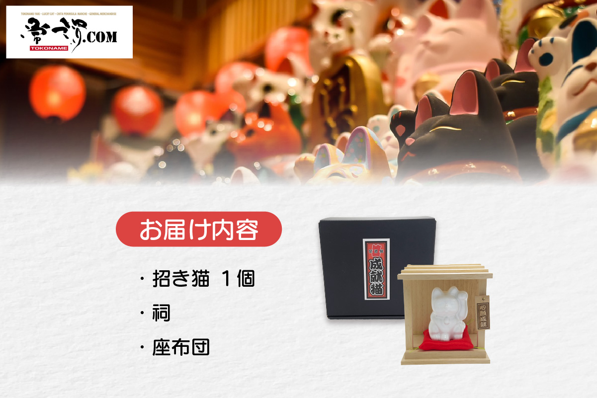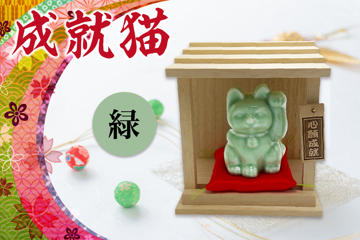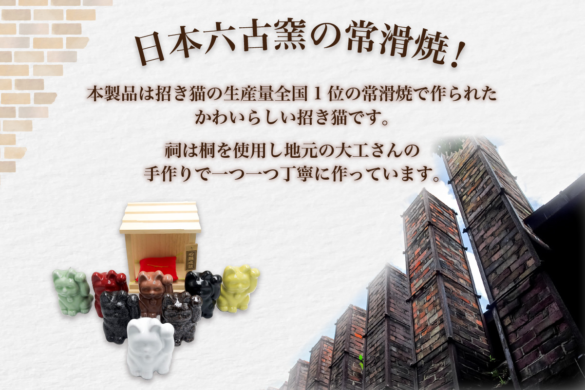 そんな招き猫に日本ならではの祠と焼き物に使われる釉薬を使用し、願いが叶うことを込めて作ったのが成就猫となります。