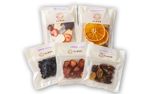 季節に応じたドライフルーツを、おまかせで5袋お送りします。