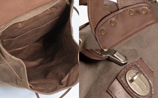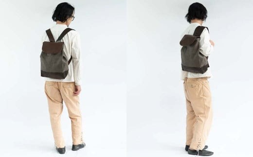軽くしなやかで通気性にすぐれた鹿革と、耐久性があり丈夫な帆布を合わせたリュックサック
