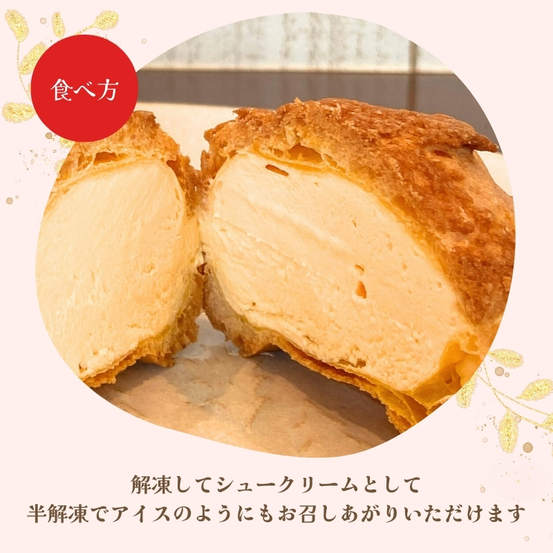生地が甘いクッキーシューの中に、マスカルポーネとクリームチーズを使用したティラミスシュークリームが入っています。チーズの塩味と生地の甘みのバランスが◎半解凍でアイスのようにもお召しあがりいただけます!