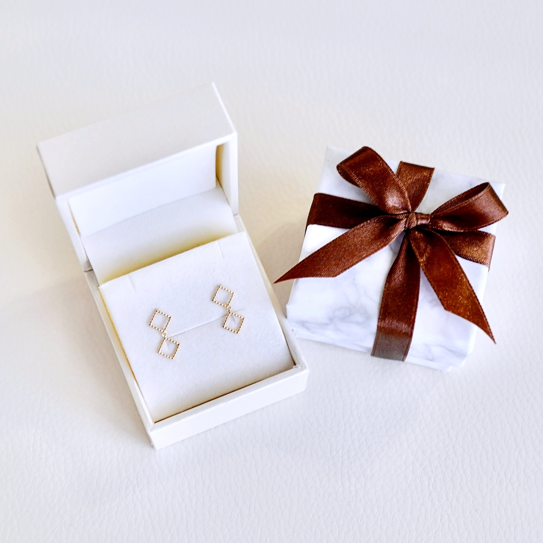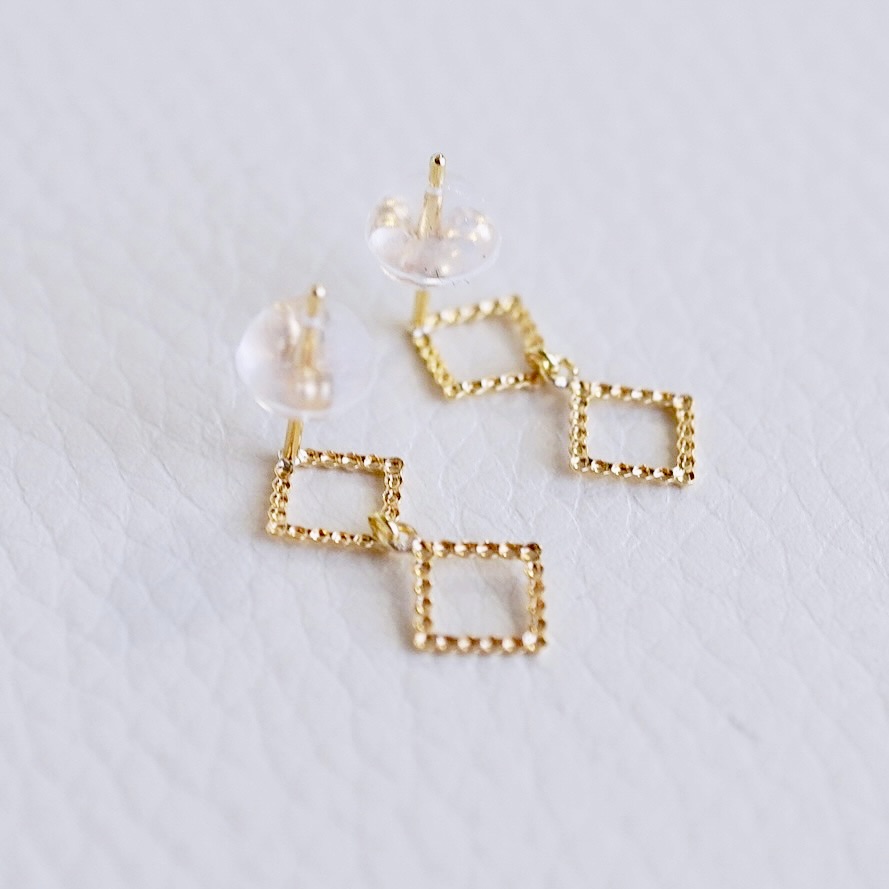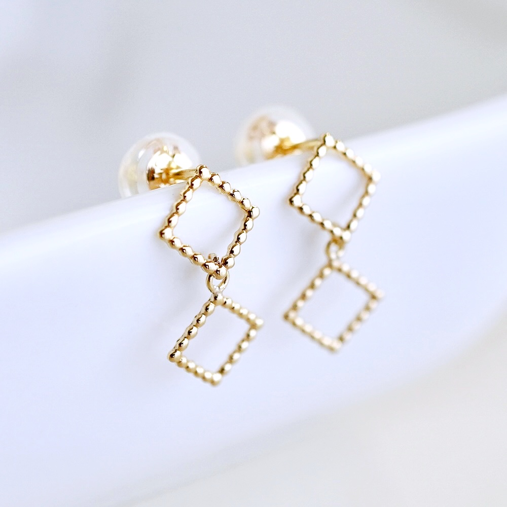 繊細なスクエアモチーフが連なり、軽やかに揺れます。