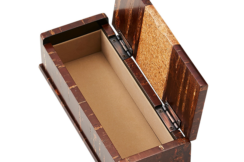 桜皮(山桜の樹皮)を貼った表面に、経木で満開の桜や紅葉を配した雲錦模様をあしらったアクセサリーケースです。