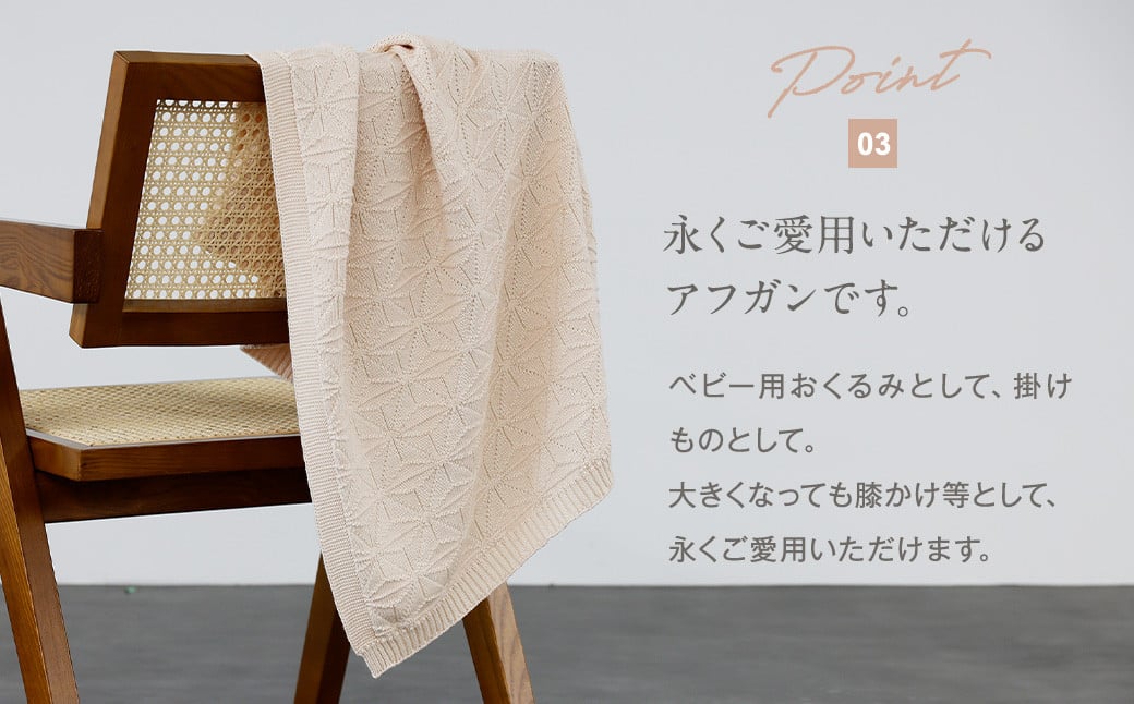 おめでたい縁起柄である麻の葉模様を編みで表現した肌触りのよいアフガンです。