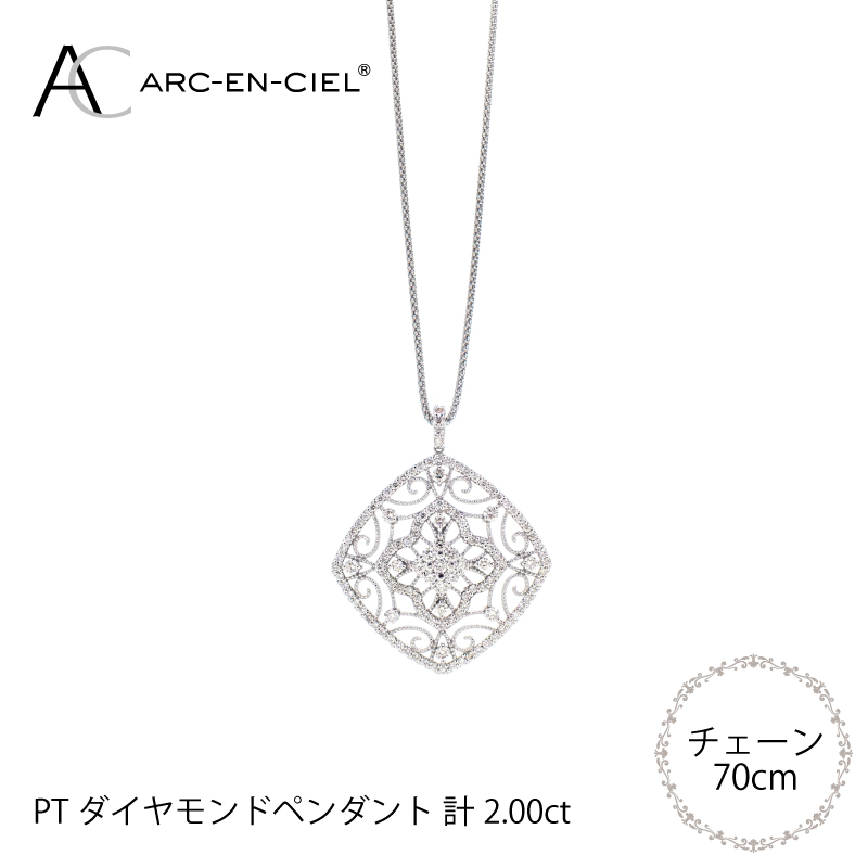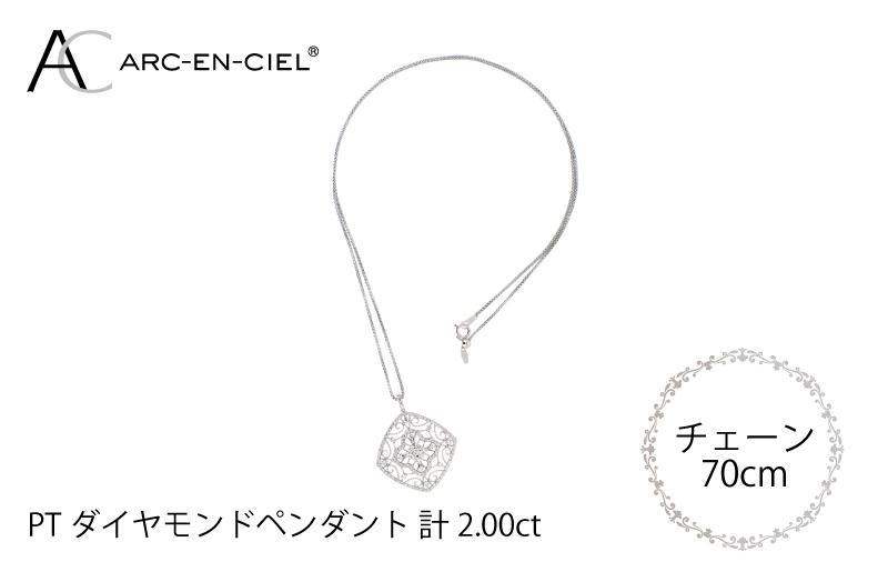 プラチナ ダイヤモンド ペンダント/ダイヤ計 2.0ct/宝石鑑別団体協議会(A.G.L)会員 鑑別機関の鑑別書付き