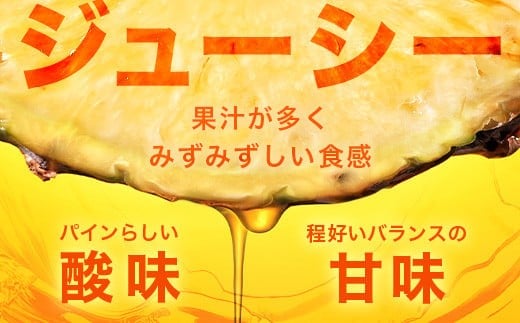 パイナップルは、収穫後は糖度が上がらないという特性があり、樹上で完熟させて甘みが最 も増すタイミングを見極め収穫してお届けします。