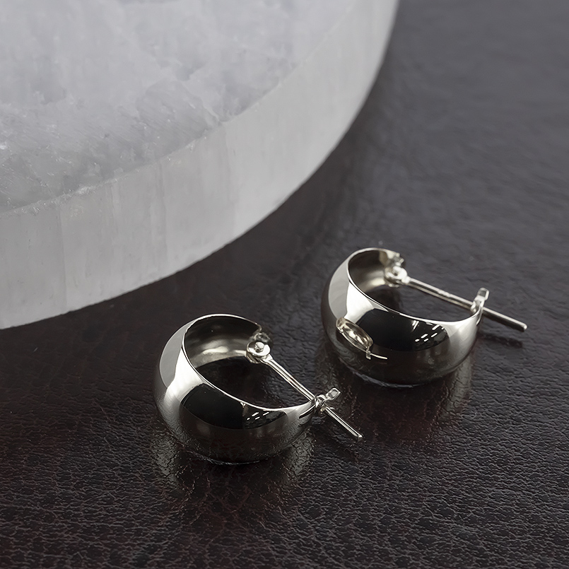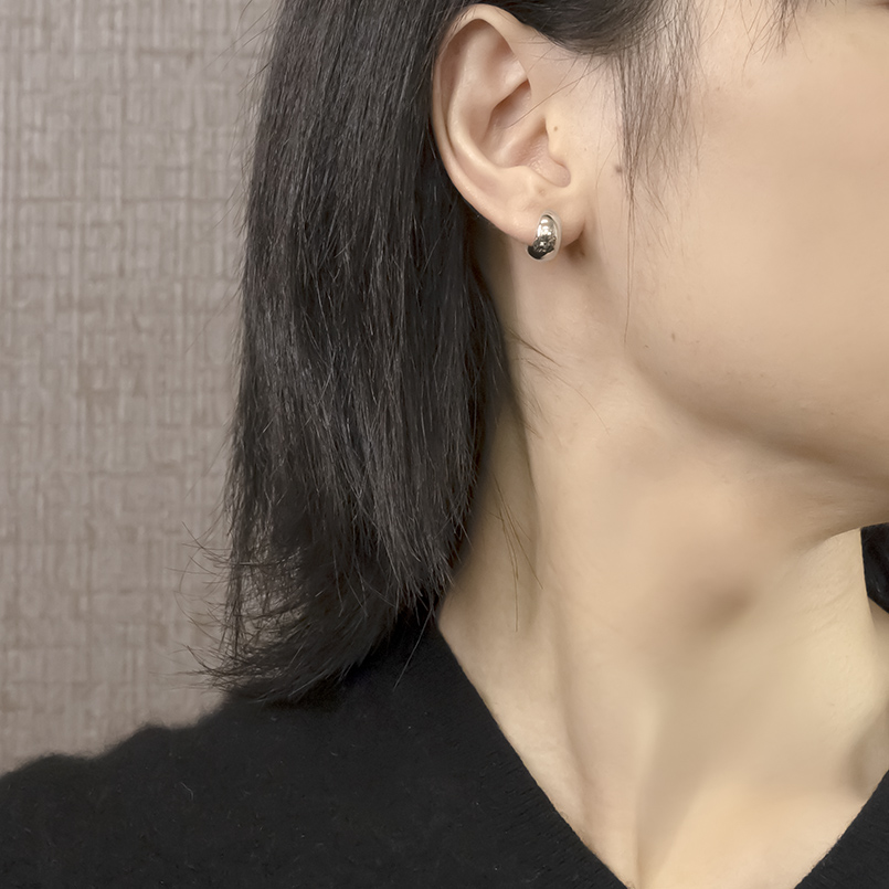 プラチナの美しい輝きを活かした、シンプルな月甲フープピアス